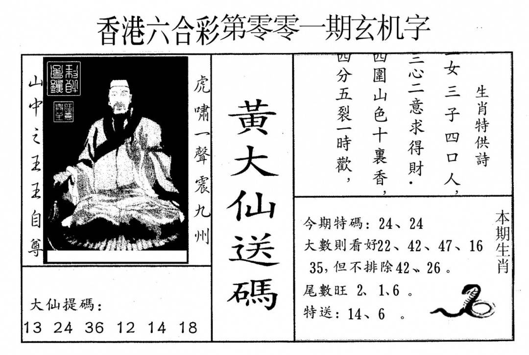 另版黄大仙灵码A